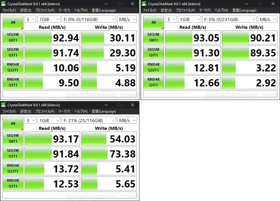 - ベンチマークソフト:CrystalDiskMark 9.0.1 x64