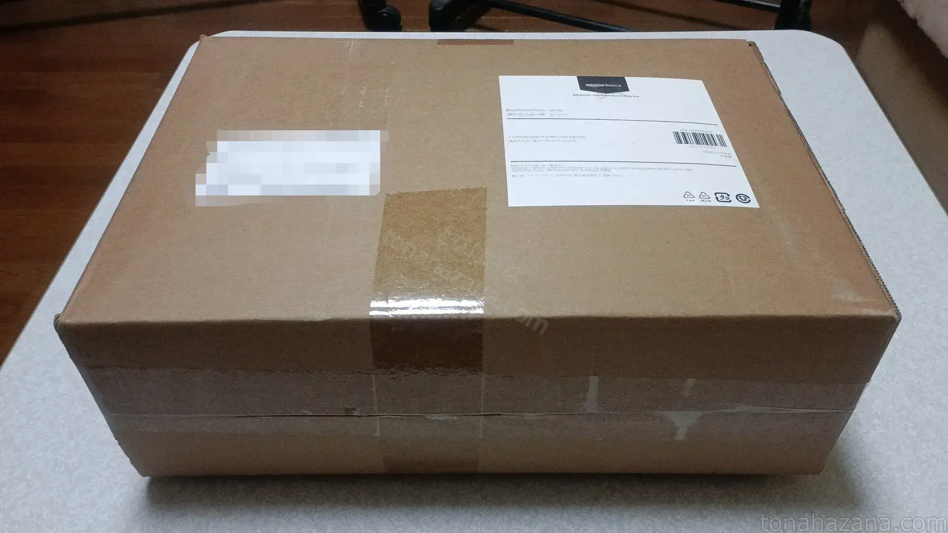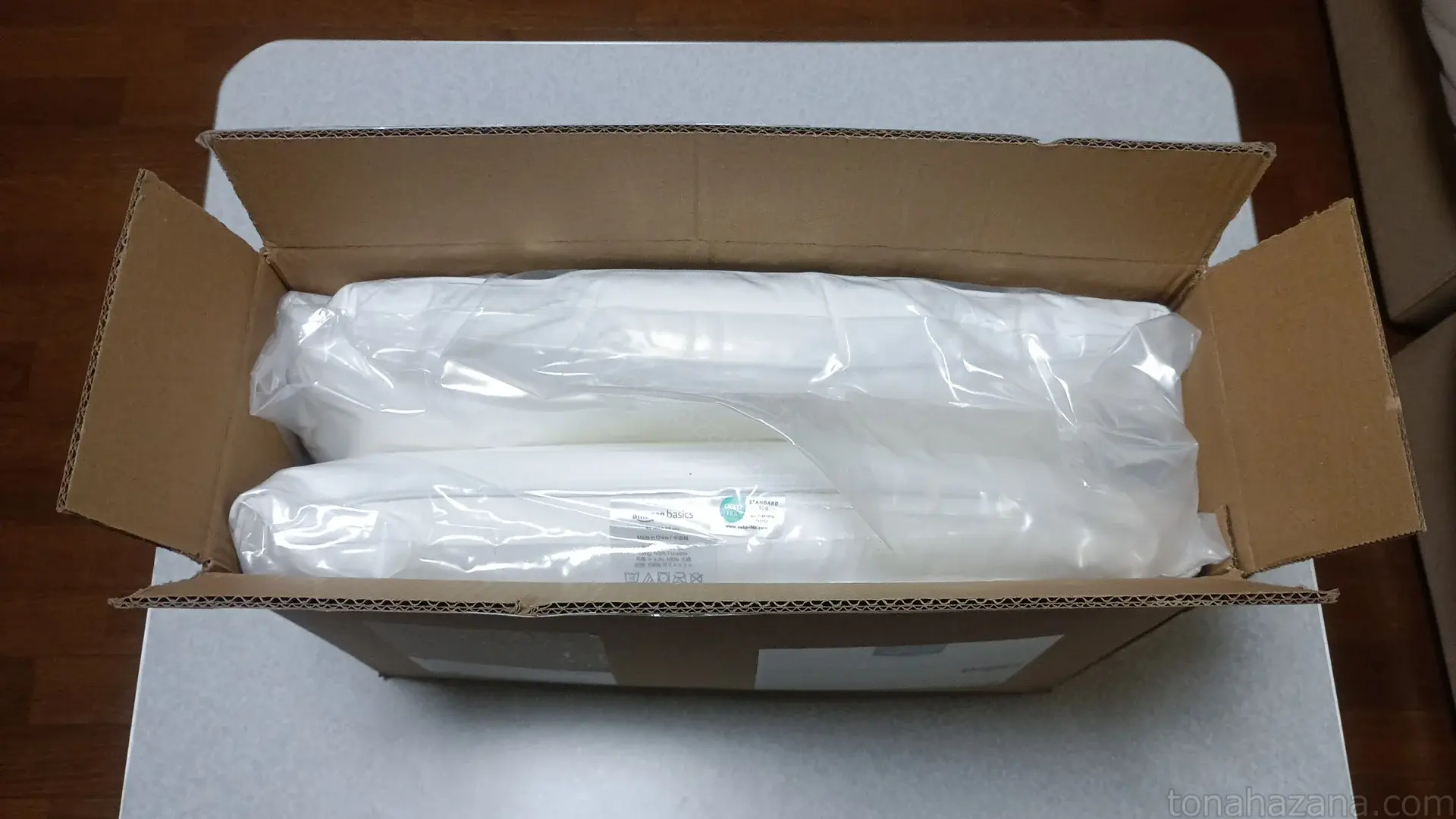 枕は2つに折りたたまれたダンボール箱に収められていた。