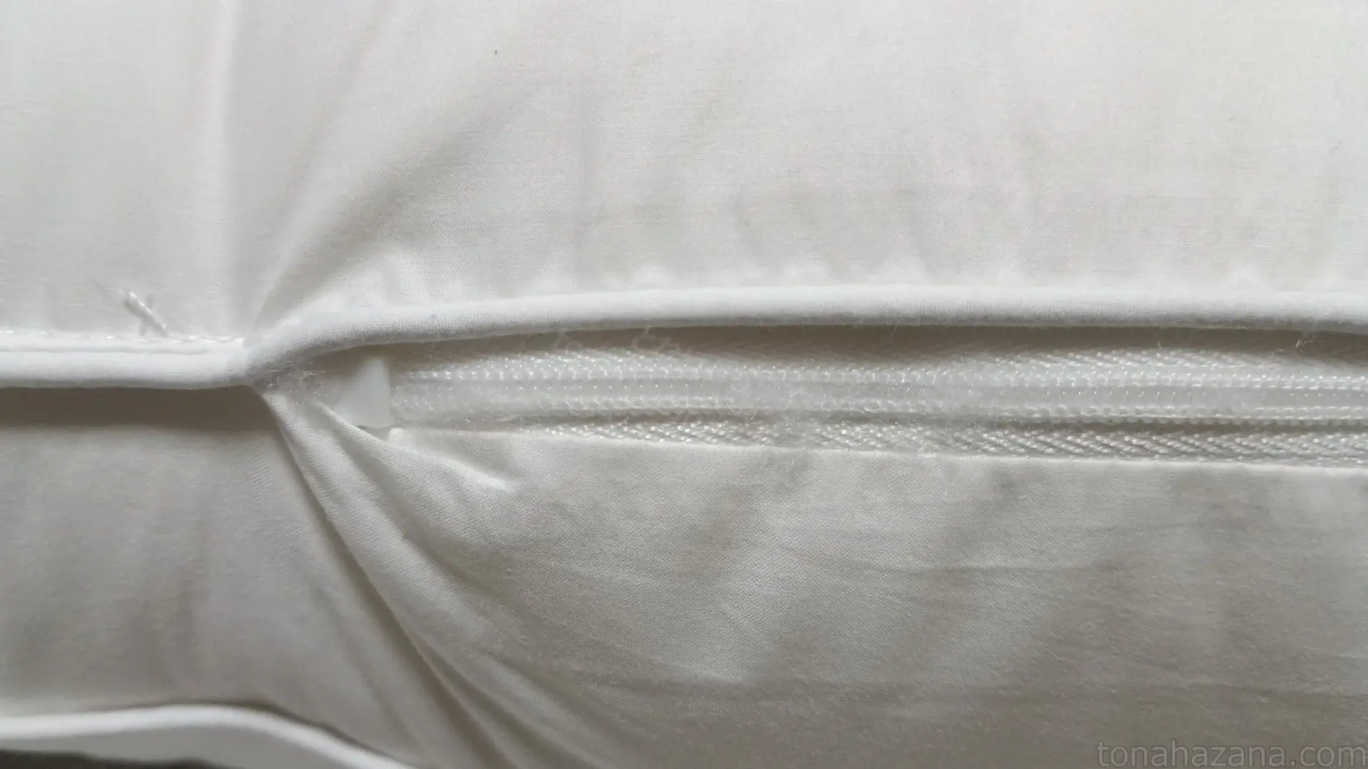 横(短辺)側面にジッパーがあり、ここから中のポリエステル綿を出し入れできるようになっている。