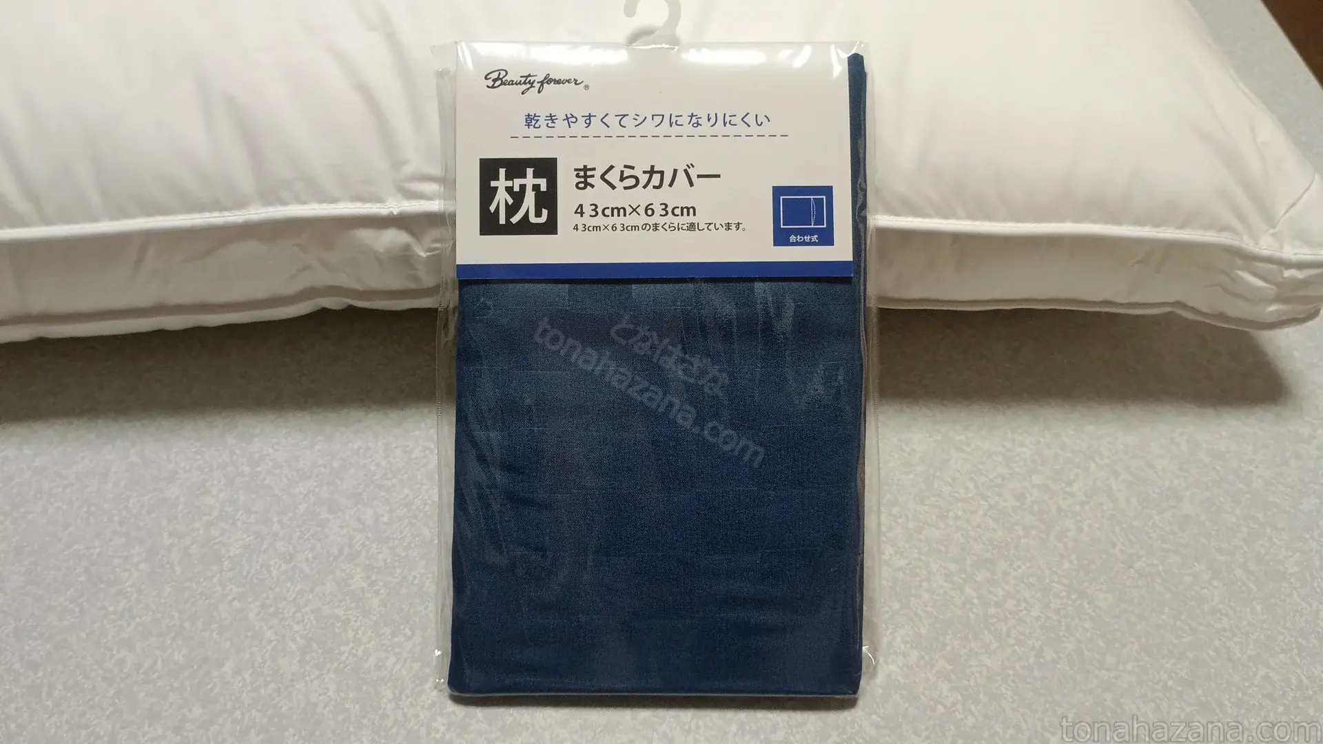 63×43cmに対応した合わせ式の枕カバーを一緒に買って使っている。