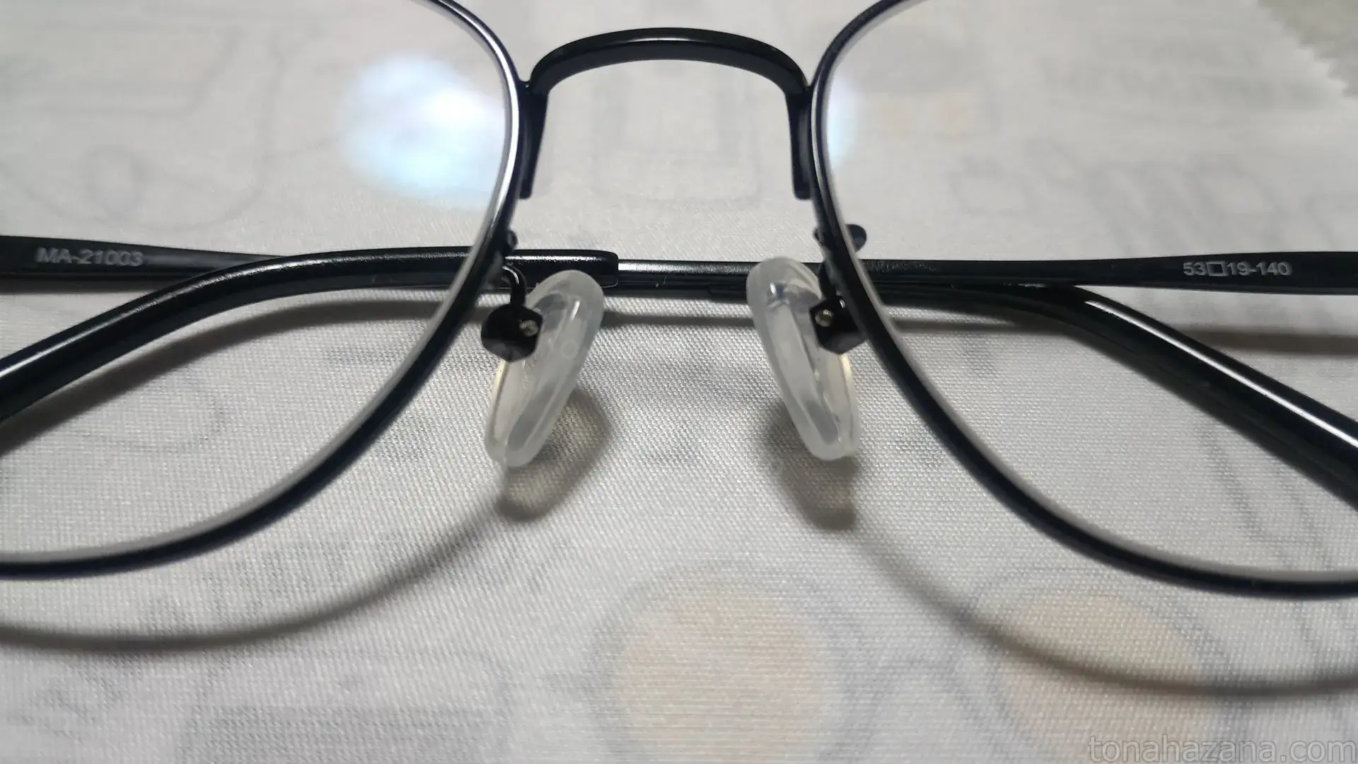 新しい眼鏡を購入したところ、鼻パッド(鼻あて)がカチャカチャ鳴って気になったため、対策として留め具部分までシリコン製のものに交換した。