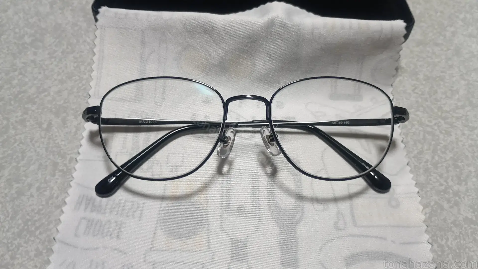 - メガネ本体、メガネケース、メガネ拭きのセットで送料込み3980円。