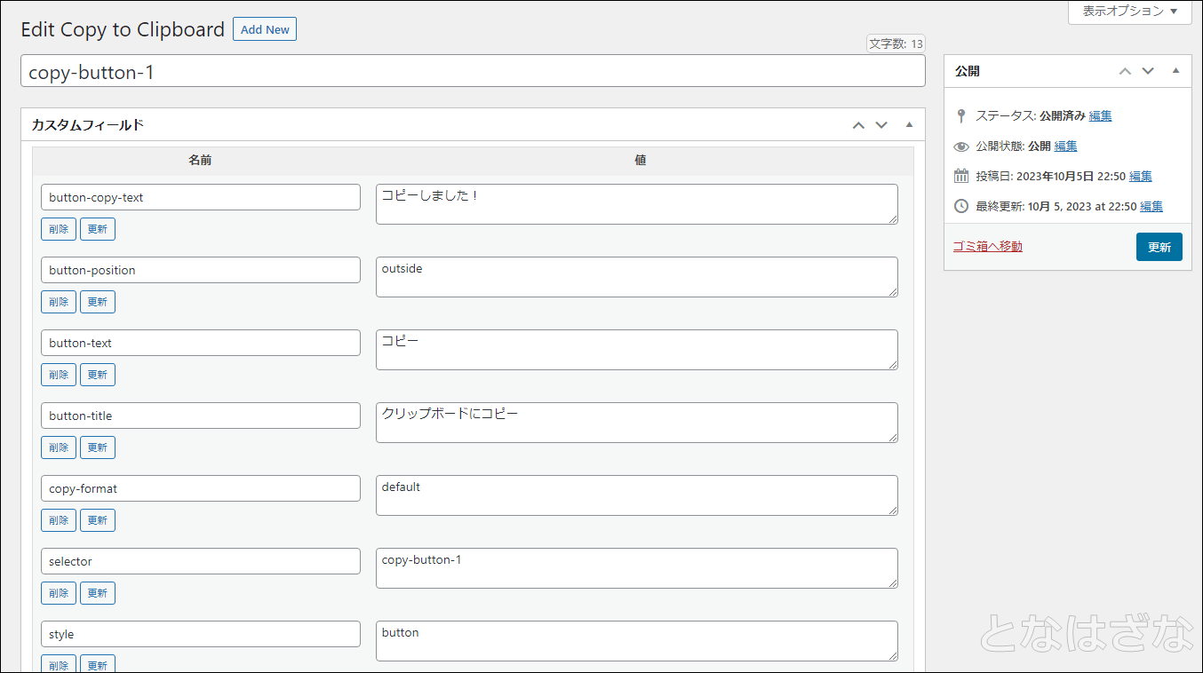 編集したい各項目を書き換えて、右側の更新ボタンを押す。